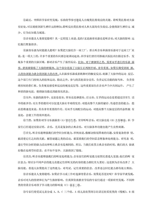 题目:15.第②段“乐曲的节奏可能是人出现莫扎特效应的关键”中加点字“可能”能否去掉?请简述理由。(只有观点,不阐述理由,不得分)