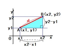 公式为:d?=|x1-x2|?+|y2-y1|?,∴d=√{(x2-x1)?+(y2-y1)?}。