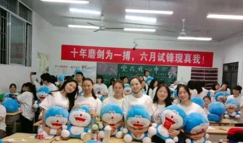 5月4日,云南昭通彝良高级职业中学的颜老师是一名语文老师。3年前,学生一位颜老师要调离学校,就联合起来给老师送了一只叮当猫。3年后,颜老师为每位学生亲手送上了一只哆啦A梦玩偶以缓解高考压力。