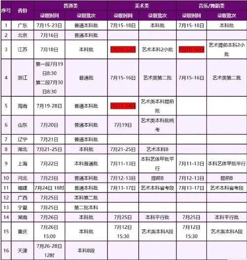 注:以上时间为参考时间,具体录取时间请以各省市招生主管部门发布的为准;