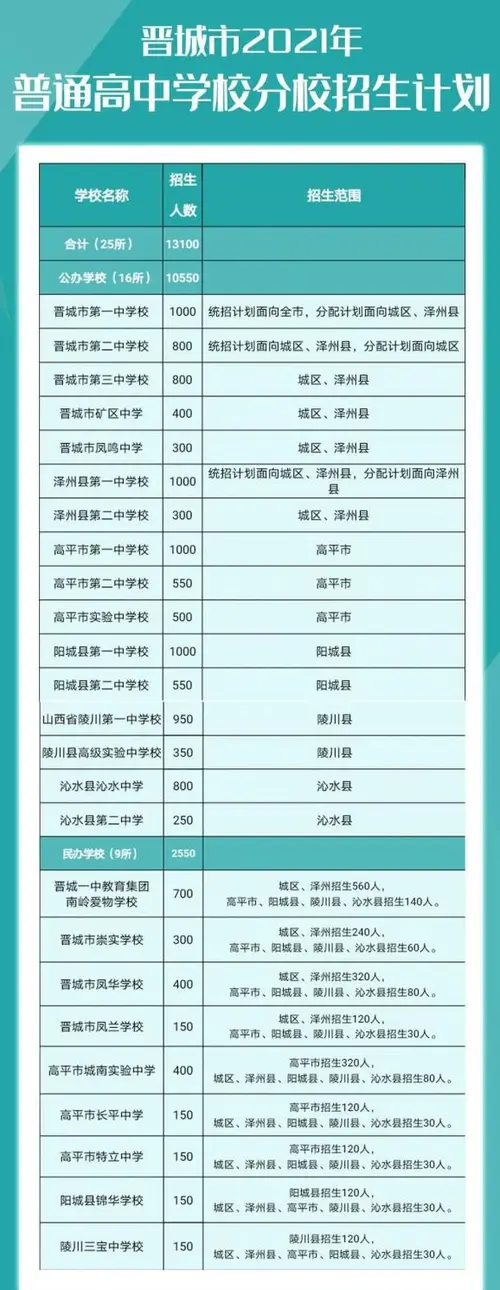 2021年晋城一中80%,晋城二中70%招生计划按初中学校轨制和报考人数分配到相关县(区)和市直初中学校