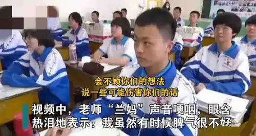 这位女老师,学生心中的兰妈,站在讲台上,声音哽咽、眼含热泪,真情流露:我虽然有时候脾气很不好,会不顾你们的想法说一些可能伤害你的话,兰妈在这里向你们道个歉,对不起,请你们原谅我。我有时候真的是,看到你们那个样子,就觉得不想让你们再吃我们走过的那种亏,我们走过的路不想让你们重走,所以才那样做,你们在我心目中就是我的孩子。当你们离开之后,不管以后会怎么样,你都要幸福!