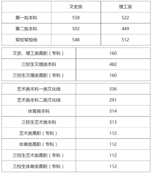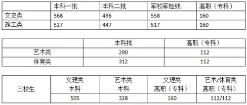 01 江西省2021年 普通高校招生各批次录取控制分数线: