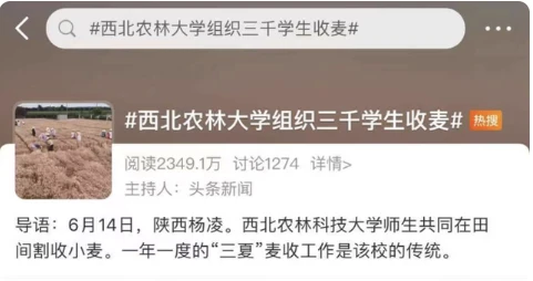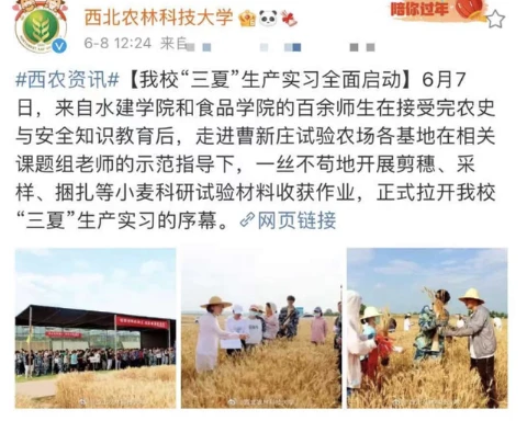 3000多名大一学生收麦子却被指作秀?西北农林科技大学回应,近日,“西北农林科技大学数千名师生共同在田间收小麦”的视频,冲上热搜却被大家说是作秀,这到底是怎么回事?下面就让小编来带大家了解一下吧。