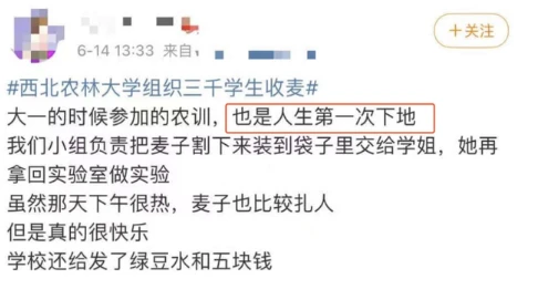 3000多名大一学生收麦子却被指作秀