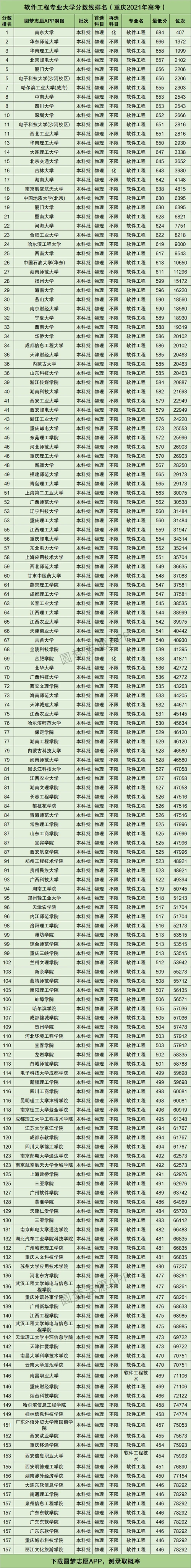 “软件工程专业全国大学排名、及其在重庆市2021年的最低录取分数线”这份名单,对2022年重庆市内想读软件工程专业的高考生来说,帮助巨大。下面是小编为大家整理的关于重庆软件工程专业大学排名及分数线的内容,供2022年考生参考。