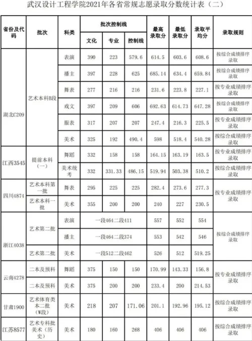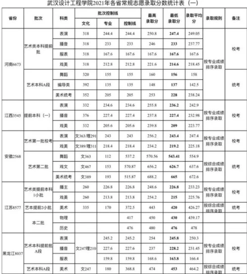2021武汉设计工程学院美术类专业录取分数线公布,武汉设计工程学院是经教育部批准设立的全日制普通本科高校,成立于2004年,历经湖北美术学院艺术设计学院、华中农业大学楚天学院两个发展阶段,2017年起面向全国试点参照独立设置的本科艺术院校艺术类本科专业单独考试招生办法进行招生,可组织专业校考并自主划定文化控制线。