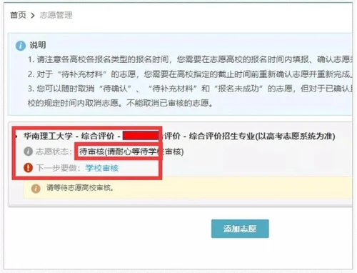 志愿状态为“待审核”。