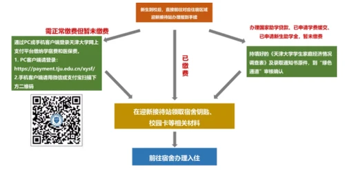 (1)已安排住宿的学生登陆迎新网查询住宿信息,到校后前往对应住宿区域迎新接待站办理报到手续。