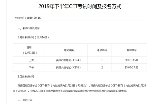四、六级考试经历了多次改革和完善,目前考试内容涵盖听、说、读、写、译等语言技能。CET笔试考试时间为每年6月和12月,CET口试考试时间为每年5月和11月。自2016年12月起,报考同一年度笔试的考生则具备报考同一级别口语考试资格。