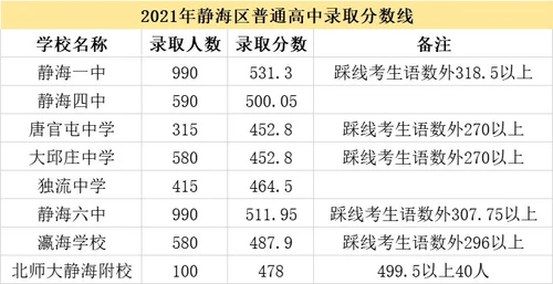 2021年天津市中考录取分数线公布!2021年天津市的中考录取分数线已经全部公布了,供2022年的中考考生参考。希望大家都能在考试中取得好成绩,进入自己理想的学校。下面是详细内容,一起去看看吧!