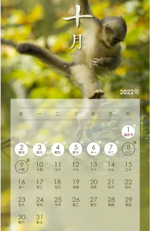 国庆节:10月1日至7日放假调休,共7天。10月8日(星期六)、10月9日(星期日)上班。这意味着,国庆节后要连上7天班(从10月8日至10月14日)。