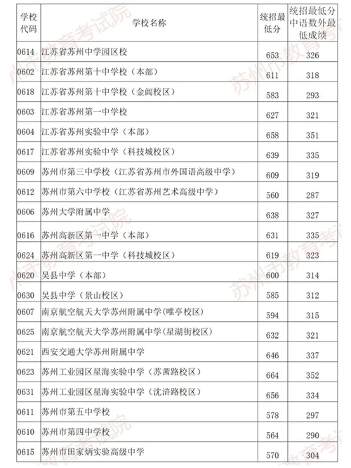 2021年江苏苏州中考市区自主招生最低控制分数线公布!