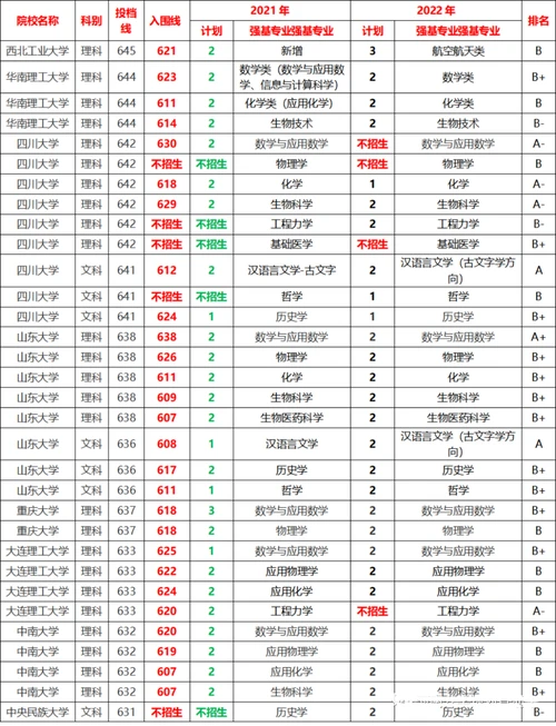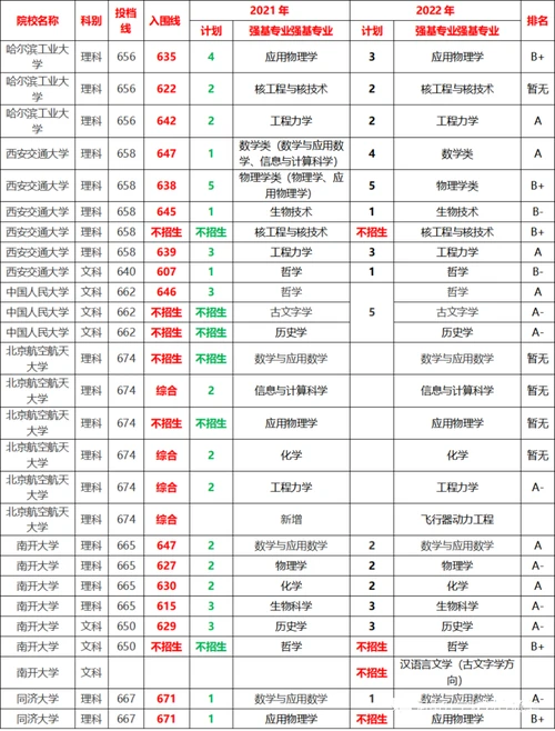 强基计划的主要目的是为国家培养基础学科人才,其主要招生专业也是在基础学科,如数学、物理、生物、历史、哲学等相关专业。与近几年大火的经济类、管理类、计算机等专业相比,以上专业听上去就很冷。而且强基计划学子入学后不能转专业,要么老老实实学四年,要么退学复读,同学们报考前一定要慎重。