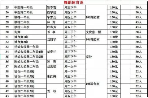 2021年秋季班计划设置舞蹈体育系、美术系、声乐戏曲系、器乐系、生活应用系等5个系别,包括36个专业,共124个教学班,聘请专业教师授课,每周1次课(2小时),共16周课。各班学费均按照德发改成本[2021]322号文件核定的德州老年大学收费标准执行。