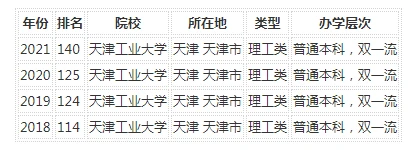 按USNews中国大学排行榜看,天津工业大学2021年全国排名第140位。