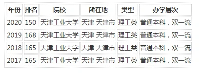 按软科排名版大学排行榜看,天津工业大学2020年全国排名第150位。