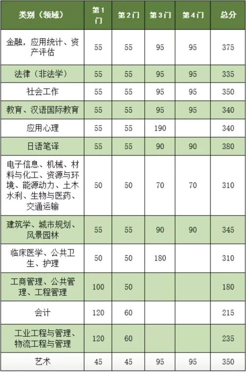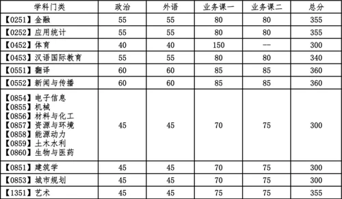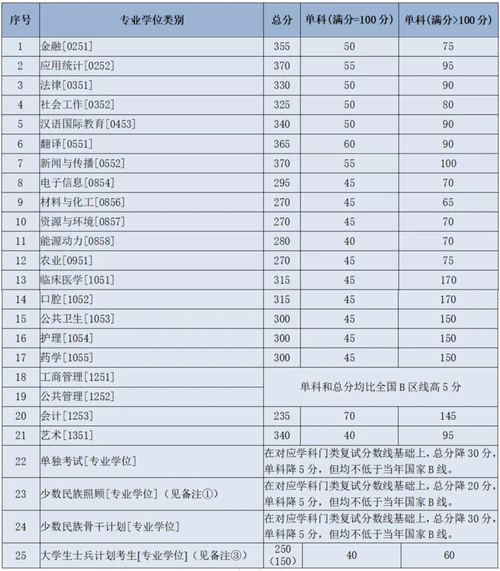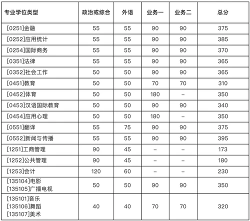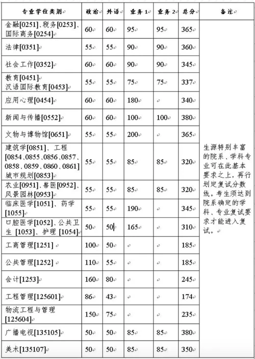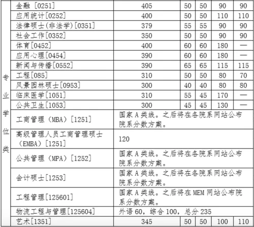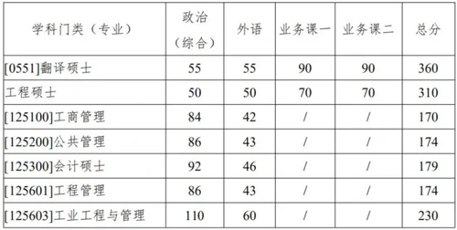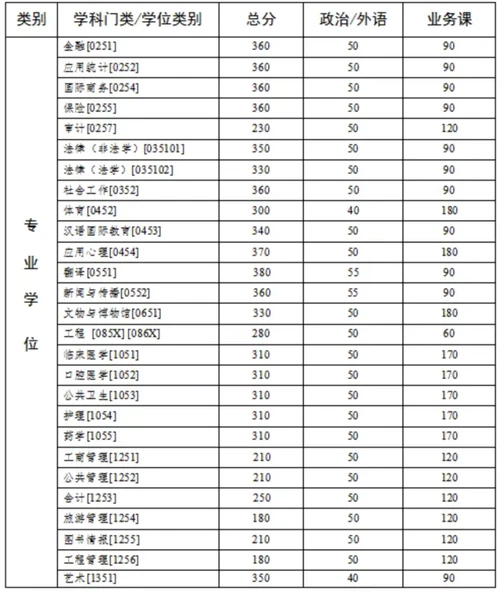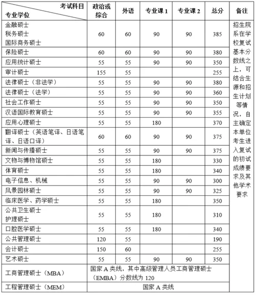 中山大学2021研究生考试专业硕士复试线情况如图所示。