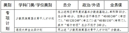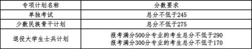 中山大学2021研究生考试专项计划硕士复试线情况如图所示。