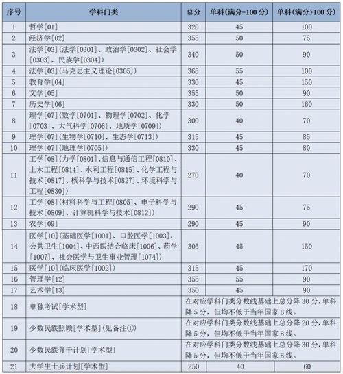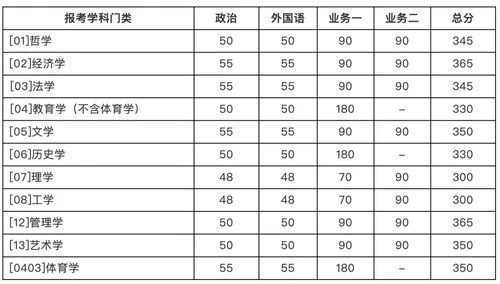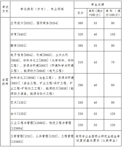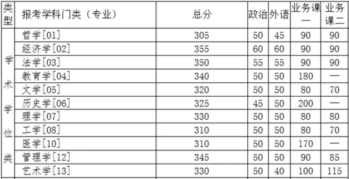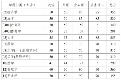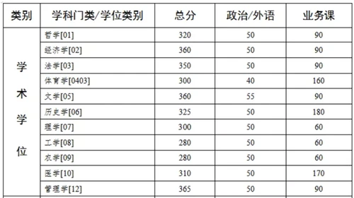 中山大学2021研究生考试学术硕士复试线情况如图所示。