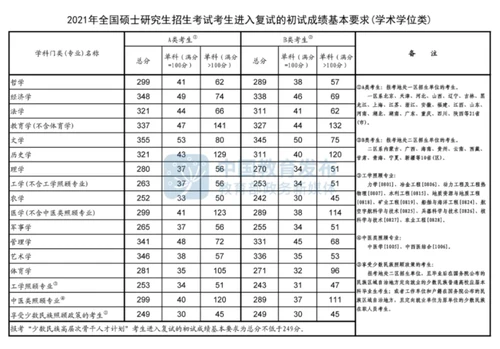 清华大学2021研究生考试学术硕士复试线情况如图所示。