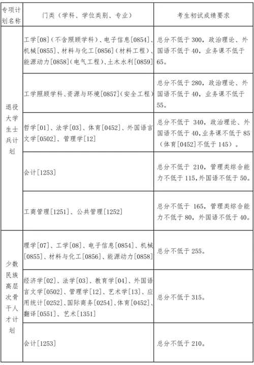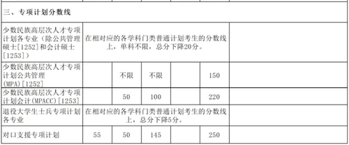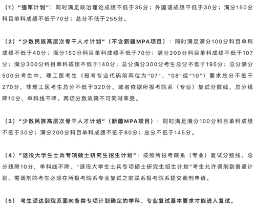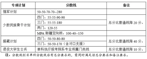 厦门大学2021研究生考试专项计划硕士复试线情况如图所示。