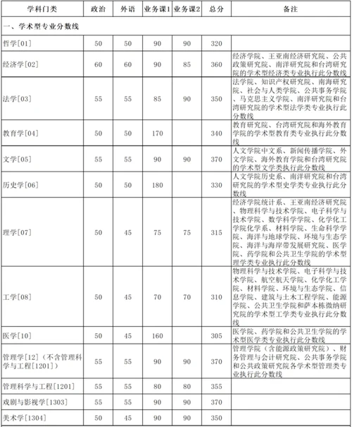 厦门大学2021研究生考试学术硕士复试线情况如图所示。