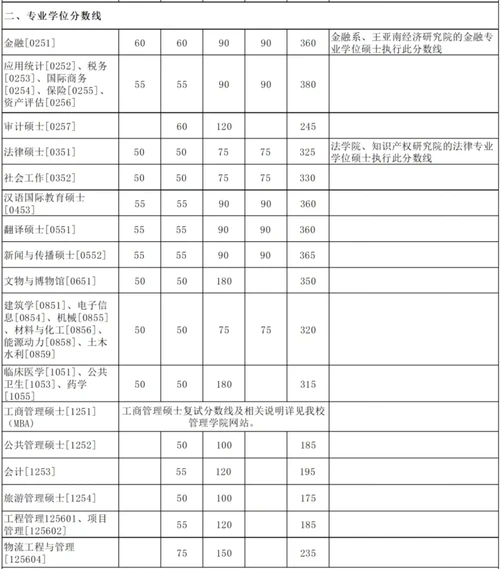 厦门大学2021研究生考试专业硕士复试线情况如图所示。