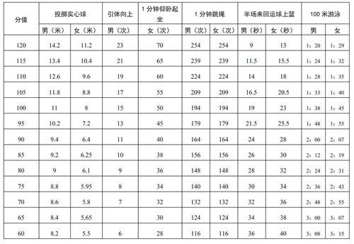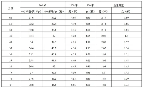 备注:1.本标准以分段分值表示。在实际评分上,按每一分值计算到百分之一。如男生1000米3:49,则实际得分为76分。