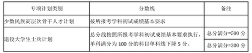 参加“大学生志愿服务西部计划”“三支一扶计划”“农村义务教育阶段学校教师特设岗位计划”“赴外汉语教师志愿者”等项目服务期满、考核合格的考生,3年内参加全国硕士研究生招生考试的,初试总分加10分,同等条件下优先录取。
