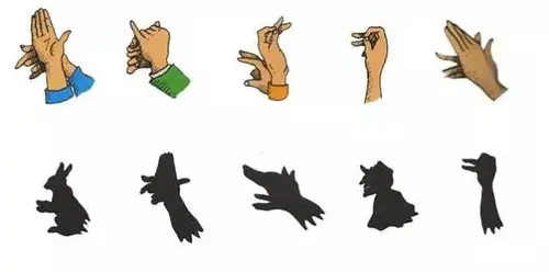 灯光照在手上,手的影子映在了墙壁上,然后就形成了各种奇妙的图案,认真观察这些手的姿势,找与之对应的正确影子,然后连上线吧!
