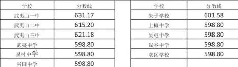 武夷山市高中录取最低控制分数线