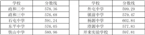 延平区高中录取最低控制分数线