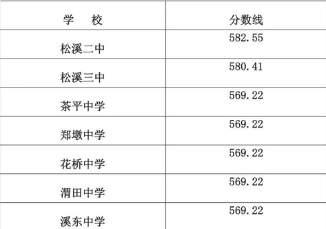 松溪县高中录取最低控制分数线