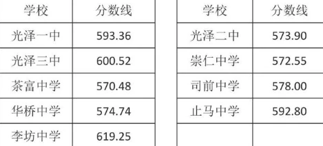 二、光泽一中定向招生各校录取分数线