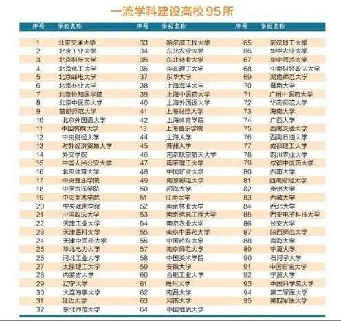 一流学科建设高校95所,除了211高校外,还包括25所双非院校。比如:昆明理工大学、首都师范大学、外交学院、中国科学院大学等,这些大学实力也非常强大的。