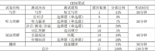 2022年上半年英语六级考试题型及分值比例