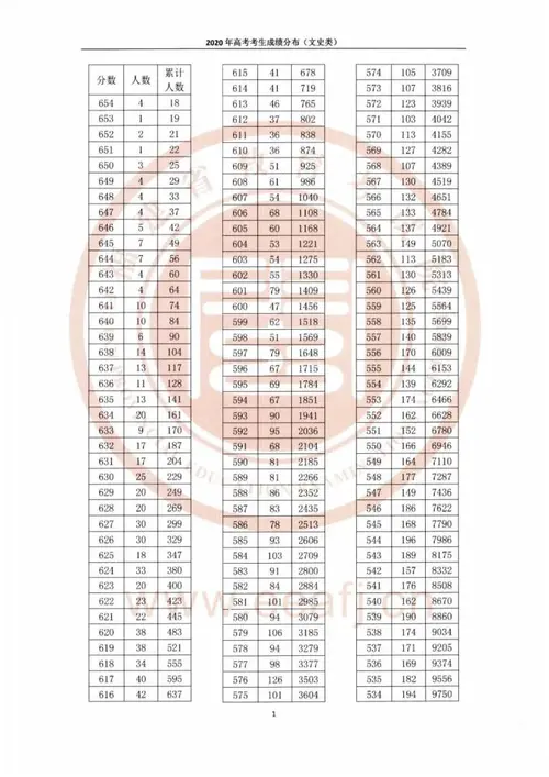 01 2020年福建省普通高校招生考试成绩统计表(文史类)