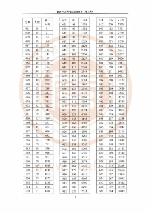每年的《高考成绩一分一段表》,是由省招办(考试院)公布的全省每一高考分数的考生分布统计表。所谓“一分一段”,是以“1分”为单位,统计获得该分数的考生人数和累计人数(也有的省份是5分一段,如广东)。文理科分开排名,每一个分数段上有多少人一目了然。