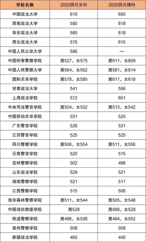 下表参考依据分别是2021年校友会中国政法类大学排名榜和2020年四川省普通批和提前批投档线。