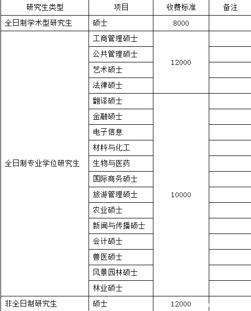 海南大学硕士研究生教育学费标准