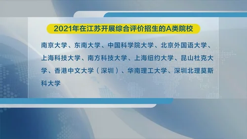 1、江苏综合评价高校对考生的选考成绩、全市模考成绩及高二高三期末考试成绩比较看重,因此,考生一定要注意各高校的具体要求。