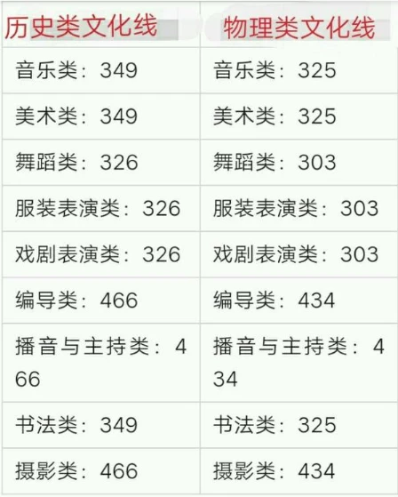 湖南省2021年本科录取控制线艺术类各专业文化线分别为