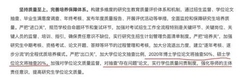 在广东,中山大学严把“出口关”,加大学位论文抽查比例。中山大学2020年博士学位论文抽查50%、硕士学位论文抽查20%。加强对学位论文质量监督,对抽查“存在问题”论文,实行学位质量问责制度,强化导师的主体责任意识,提高研究生学位论文质量。