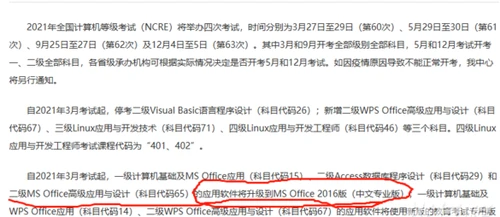 日前,全国计算机等级考试官网发布了2021年计算机等级考试安排,春季的考试将于2021年3月27-29日举行。值得大家注意的是,从2021年3月份考试开始,计算机二级office考试的软件版本升级为微软office2016了。