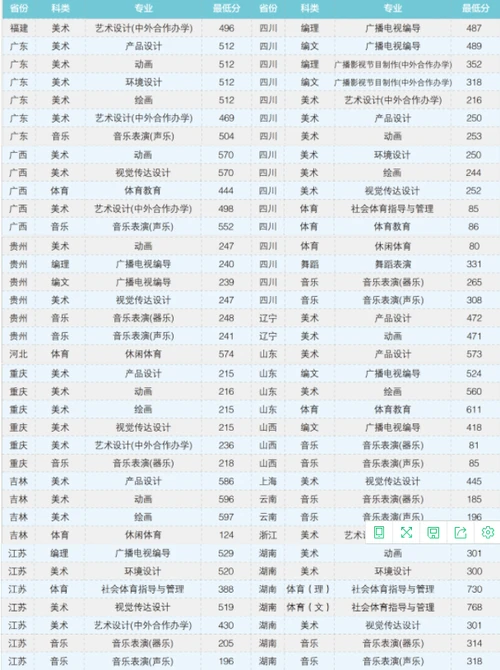 04 成都大学2020年各省份艺体类专业录取分数一览表