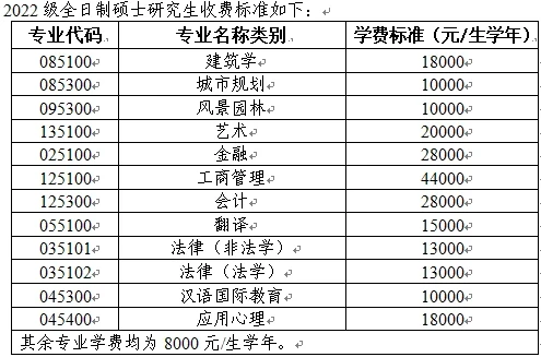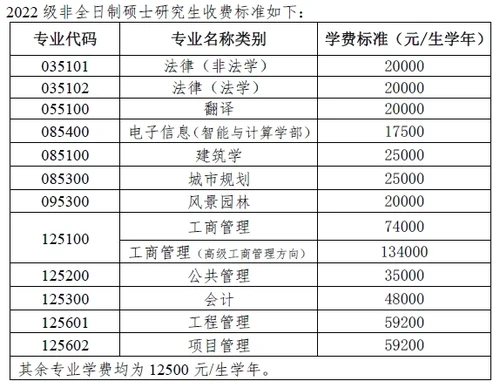 非全日制管理科学与工程(120100)、工商管理(120200)和智能医学工程(0831Z2)硕士研究生学费标准与全日制硕士研究生等同。