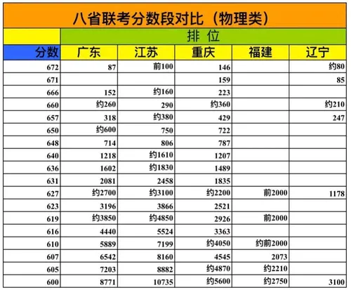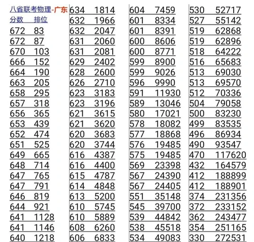 此次联考,广东参考人数有77.96万,是八省联考中人数最多的省。此次联考广东,物理类考生672分以上有83人,600分以上考生8771人,生率1.1%。