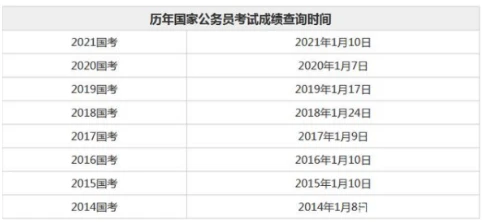 以上可以看出:每年的国考成绩查询时间都在1月份,除了2019年和2018年外,其余国考笔试成绩查询时间都在1月中上旬。所以,2022年1月上旬准备好查成绩……