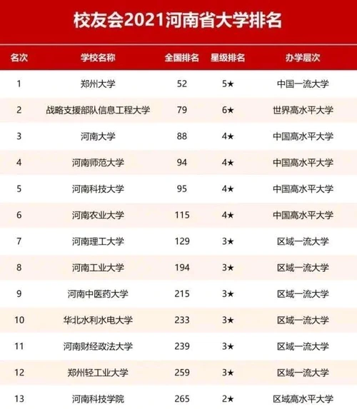 2021河南一本大学排名 河南最好的大学排名前十名,河南一直都是教育重省,所以大学排名也更受人们关注。2021年河南省最新大学排名正式公布,下面就来跟小编看看都有哪些大学上榜吧